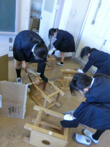 先日のあくしゅのつどいでのお年寄りとの関わりから、高齢者についてもう少し詳しく学習することになりました。自分たちと高齢者は何が違うのかを眼鏡をかけたり、ひざやひじにサポーターをつけたりして、見え方や体の動き方について体験しました。想像以上に不便さや痛みを感じて驚いていました。高齢者の方への接し方について考えていけるといいですね。