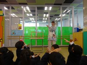 科学の時間でマイクロビットを使ってプログラミング学習を行いました。自分で好きな文字を入力したり、鍵盤でオリジナル音楽を作成したりし、さらには繰り返し機能やボタンを押すと鳴ったりする機能を使うなど、自分が作りたいものを作るためにどのような機能を使うとよいかを考えていました。