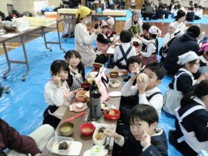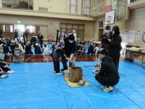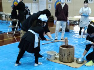 11/29(土)にもちつき会を開催しました。 学年ごとに分かれて餅をつき、豚汁や漬物と一緒にいただきました。 子供たちは、自分たちでついた餅をおいしそうに、笑顔で食べていました。 朝早くからお手伝いいただいた、PTAの方々、地域協力員の皆様、公民館やJA関係者の皆様、本当にありがとうございました。