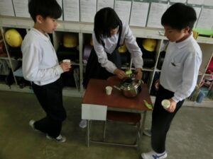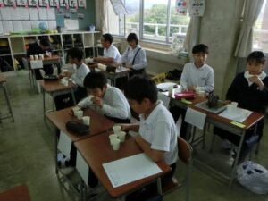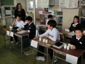 こんぶ、かつおぶし、にぼし、出汁なしの4種類のみそ汁を飲み比べました。