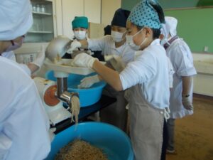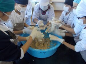 JA女性部の方々に来ていただき、みそづくり体験とみそ汁の調理実習をしました。