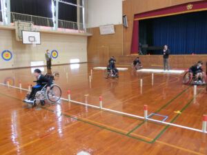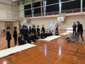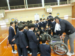 11月13日(木)に社会福祉体験②として、障害者体験を行いました。社会福祉協議会の方をお招きし、車いす体験を行いました。何気なく歩いている道や生活の動きが車いすではとても大変であることを感じていました。また、通常使用する車いすと競技用の車いすの両方に乗り、動き方の違いも知ることができました。