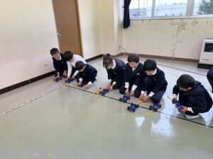 理科では、「遠くへ車を走らせよう」という課題で学習を進めています。各自、自分の考えが正しいことを実証しようと、真剣に取り組んでいます。