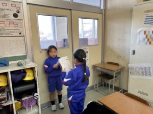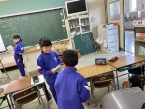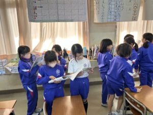 算数科では「かけ算」を学習しています。今日は初めて8の段を学習しました。友達とペアになって一緒に唱えました。たくさんの人とペアを作って覚えようと頑張る姿が見られました。