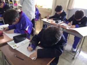 止め、はね、はらいなどに気を付け、字形を整えて書こうと集中して取り組みました。
