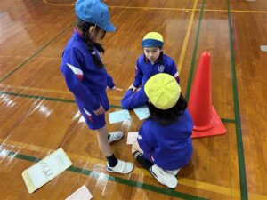 2年生体育科では「表現運動」の学習をしています。北加積ファミリーパークの中でいろいろな動物になりきって表現しました。