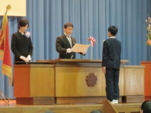 3月17日 春の訪れを感じさせるこの日、卒業式が行われ、卒業生30名は、大変立派な態度で校長先生から卒業証書をいただきました。