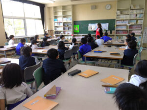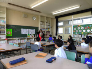 図書室のよい使い方について学び、読み聞かせもしていただきました。いろいろな本に親しみましょう。