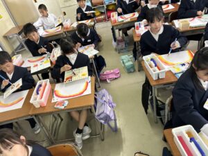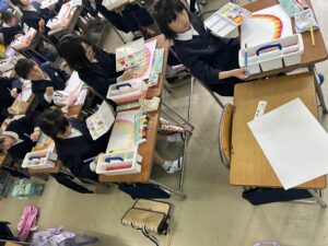 3年生図画工作科では、水彩画の勉強をしています。この日は自分だけの虹を描きました。